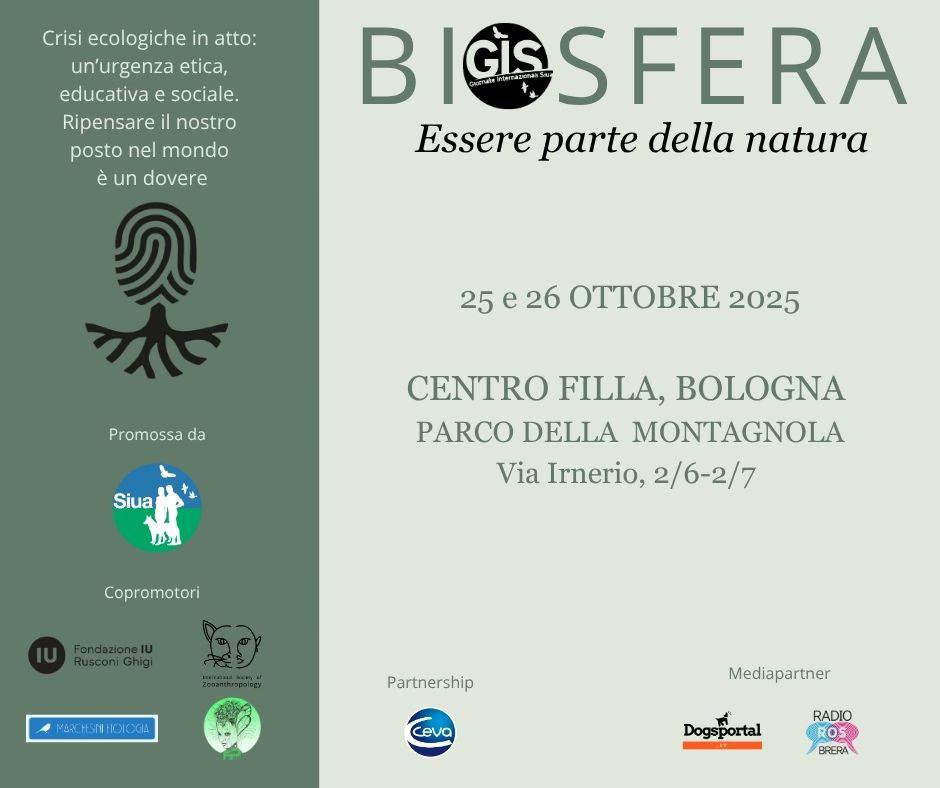 Quest’anno ospitiamo a Filla, nel parco della Montagnola, le Giornate Internazionali di Studio (GIS), un appuntamento convegnistico annuale promosso dalla Scuola di Interazione Uomo Animale (SIUA), con sede a Galliera (BO), in collaborazione con la International Society of Zooanthropology (Fällanden, Svizzera), il Centro Studi di Filosofia Postumanista e la casa editrice Apeiron (Bologna).