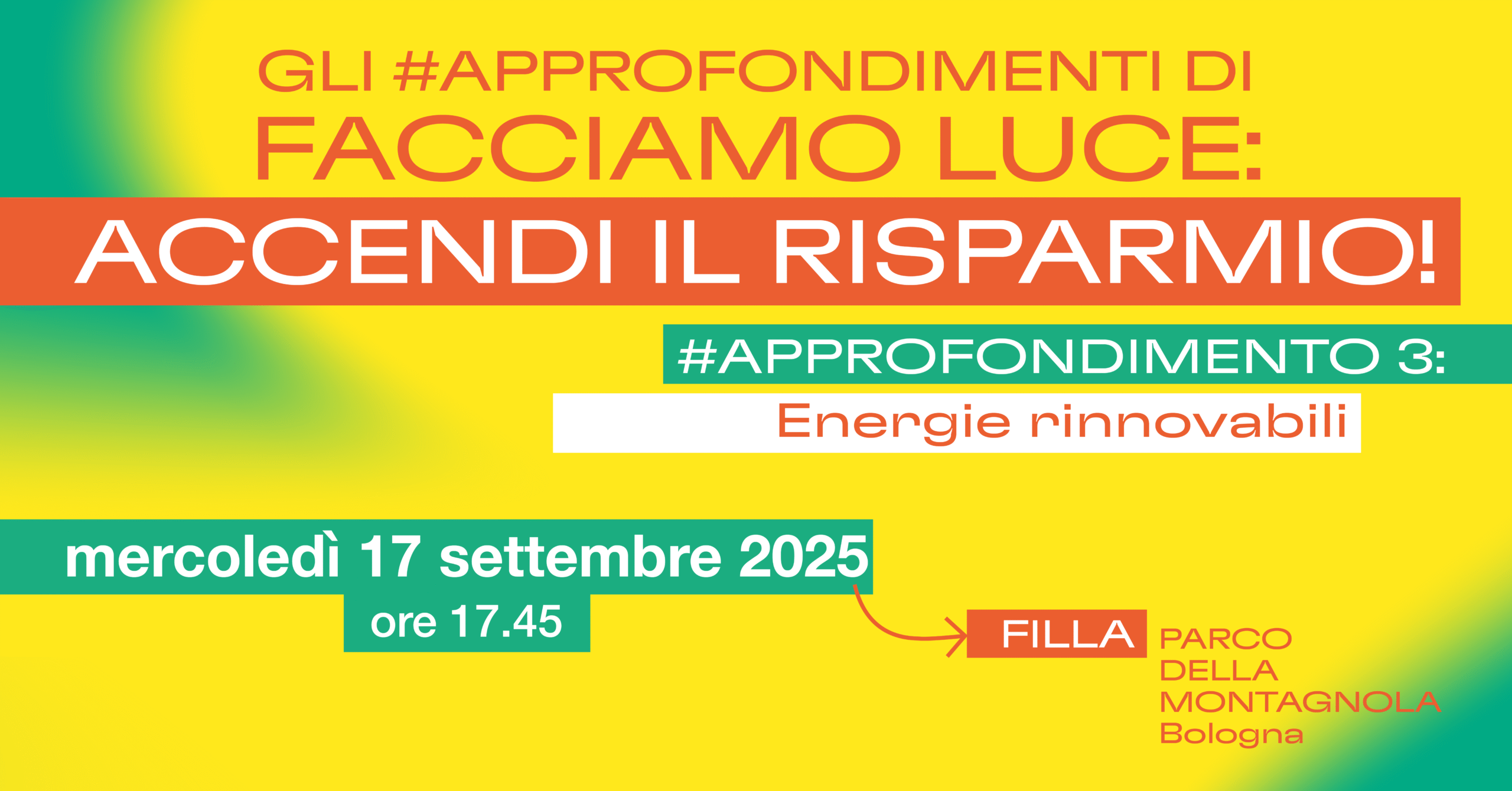 L’incontro è parte del ciclo degli Approfondimenti di “Facciamo luce: accendi il risparmio” dello Sportello Energia del Comune di Bologna.