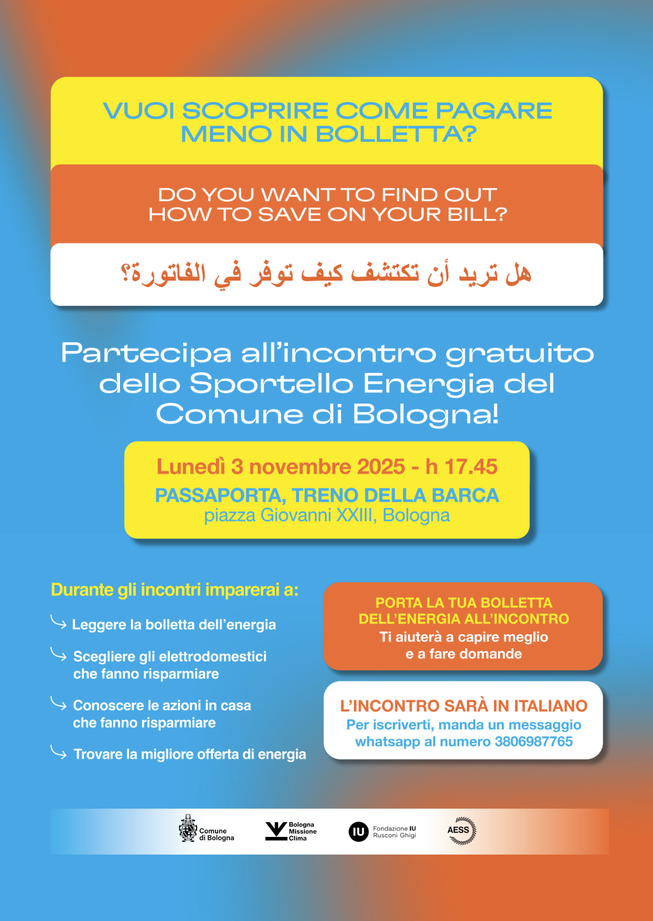 L’incontro è rivolto in particolare a chi vive nell’edilizia residenziale pubblica (ACER) della zona, ma è aperto a tutte le persone interessate ad acquisire strumenti pratici per ridurre i consumi energetici in casa e orientarsi nel mercato dell’energia.