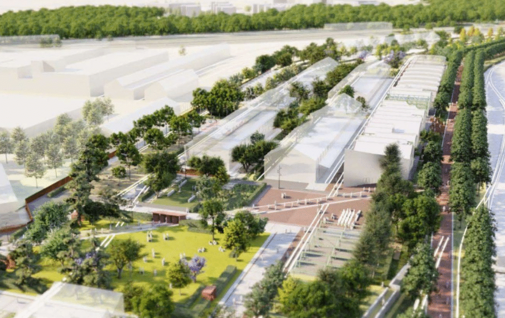 Il parco, situato nella parte ovest dell’area, contribuirà a migliorare le qualità ecologiche del sito, fornendo habitat per la fauna locale e spazi ricreativi per tutti. Un elemento chiave dell’intervento è l’inserimento di un sistema di siepi campestri, che avrà due funzioni principali: garantire la continuità ecologica dell’area e demarcare ed enfatizzare le linee e la direzionalità storica dei binari.